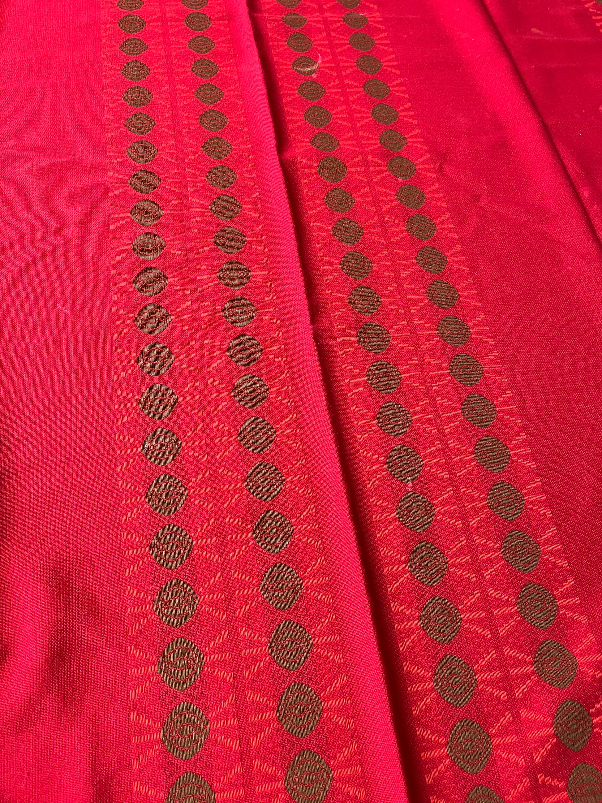 Rød med orange og grønt vævet mønster
